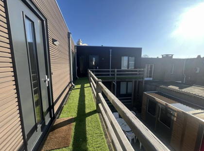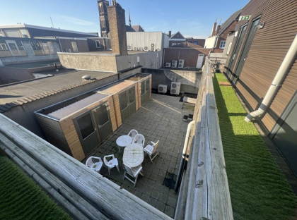 Op de 1e verdieping is een gezamenlijk dakterras en zijn ook de bergingen gesitueerd.