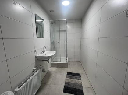 De open keuken is voorzien van diverse inbouwapparatuur zoals een gaskookplaat met afzuigkap, vaatwasser, spoelbak en combimagnetron. De badkamer is ingericht met een douche en wastafel. Het toilet is apart.