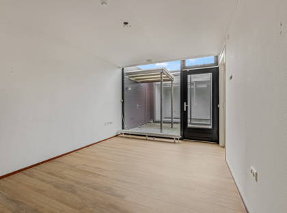+ De ruime, lichte woonkamer is voorzien van spuitwerk wanden, een pvc-vloer en airconditioning (2022). De grote raampartijen zorgen voor veel daglicht. Ook heb je vanuit de woonkamer uitzicht op het groene Zuiderpark.