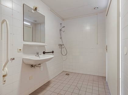 + De badkamer is ingericht met een douche en wastafel. Ook is er een separate toiletruimte aanwezig.