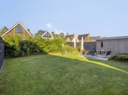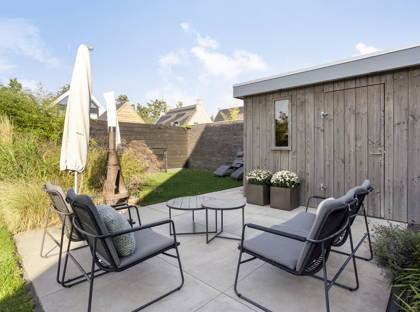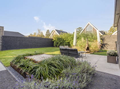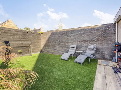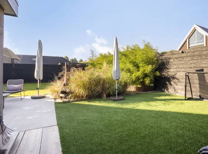 + De onderhoudsvriendelijke achtertuin is voorzien van een overkapping met spotverlichting en ingebouwde horeca-heaters, waardoor je het hele jaar door kunt genieten van het buitenleven. Er is een houten berging aanwezig met een water- en elektra-aansluiting (3 groepen), en het groene gazon en het waterfonteintje zorgen voor sfeer. De praktische beregeningsinstallatie maakt het onderhoud ten slotte eenvoudig.
