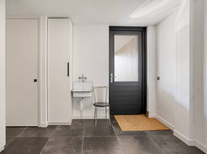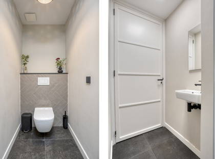 + Via de overdekte voordeur stap je binnen in de ruime entree met de eerste toiletruimte met wandtoilet en fonteintje.