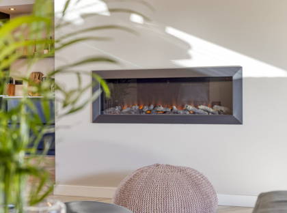 + De woonkamer is ruim, licht en voorzien van een sfeervolle elektrische haard die zorgt voor een warm woongevoel.