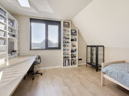 + De bergzolder is gemakkelijk bereikbaar via een luik met vlizotrap en biedt volop extra opbergruimte.
