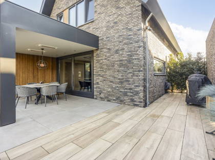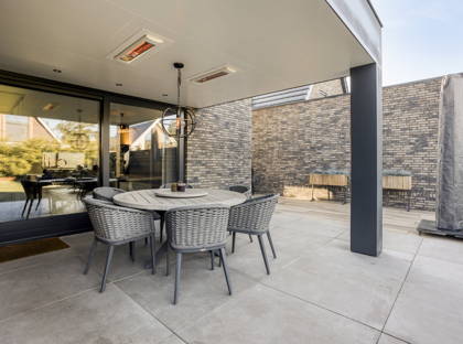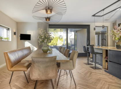 + De tuingerichte eethoek staat in een vloeiende verbinding met de achtertuin door de brede schuifpui.