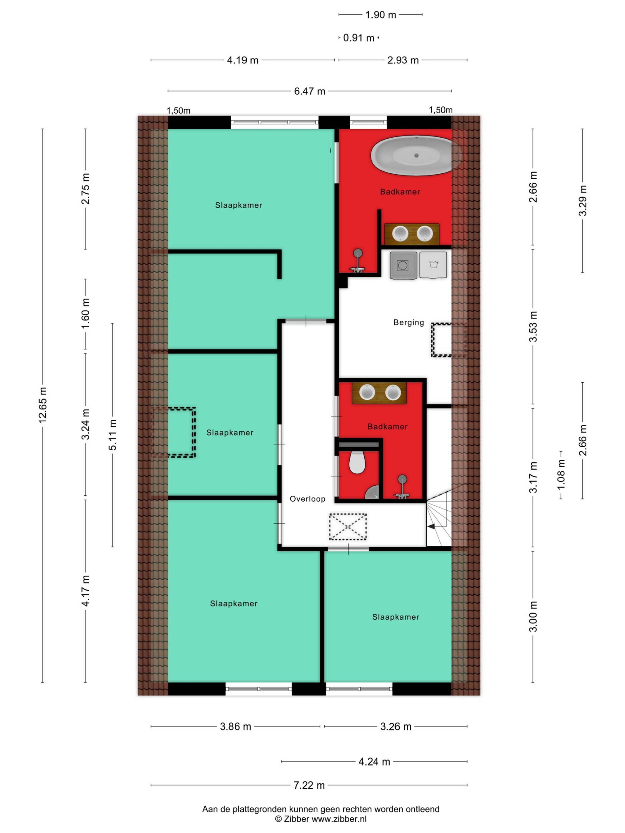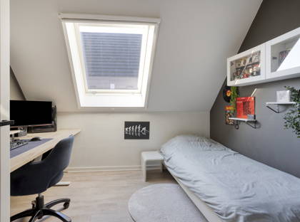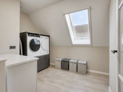 + De separate waskamer is uitgerust met de witgoedaansluitingen en een dakraam voor een fijne lichtinval en extra ventilatie.