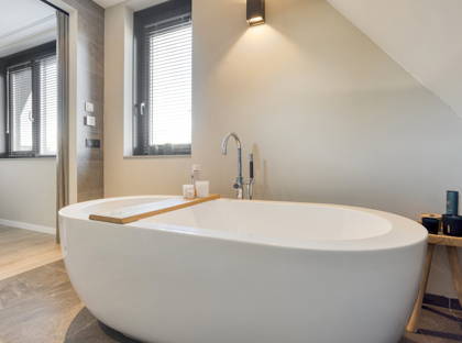 + De hoofdslaapkamer is voorzien van een inloopkast en badkamer en suite. Deze luxe badkamer is ingericht met een vrijstaand ligbad, badkamermeubel met dubbele wastafel en ruime inloopdouche.