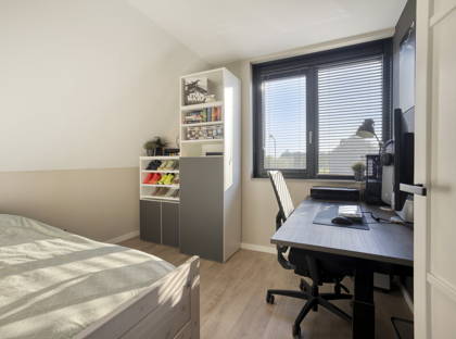 + Ook de multifunctionele ruimte naast de keuken is voorzien van een brede schuifpui. Deze ruimte met airconditioning is ideaal in te richten als thuiskantoor, speelkamer voor de kinderen of hobbyruimte.