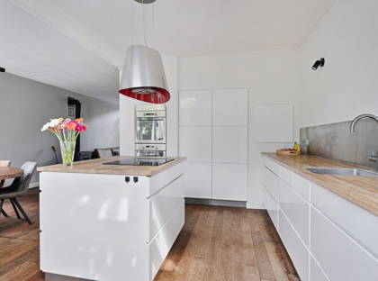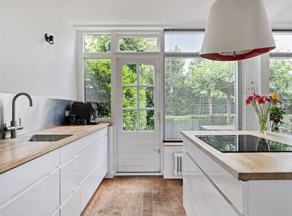 + De moderne open keuken aan de tuinzijde van de woning is een echte eyecatcher. Het kookeiland met inductiekookplaat en stijlvolle design afzuigkap vormt het hart van de ruimte. De ingebouwde kastenwand biedt volop opbergruimte en is uitgerust met een oven, combi-oven, koelkast, vriezer en vaatwasser. Dankzij het royale werkblad geniet je hier van zowel praktisch gemak als extra comfort tijdens het koken.