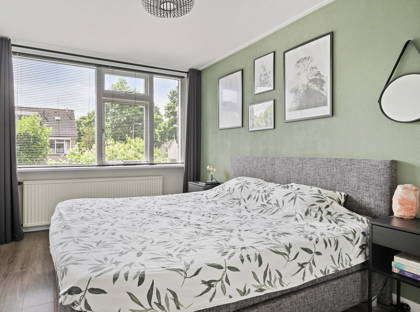De slaapkamers op de eerste verdieping zijn allemaal strak afgewerkt, en ook de tweede verdieping is recent gemoderniseerd tot een volwaardige extra slaapkamer of werkkamer met praktische voorzolder. Dankzij de gunstige zonligging van de tuin geniet je hier de hele dag van zon en rust. De tuin is bovendien erg ruim, fraai aangelegd en biedt volop privacy. De woning is daarnaast praktisch in gebruik met veel bergruimte door de inbouwkasten.