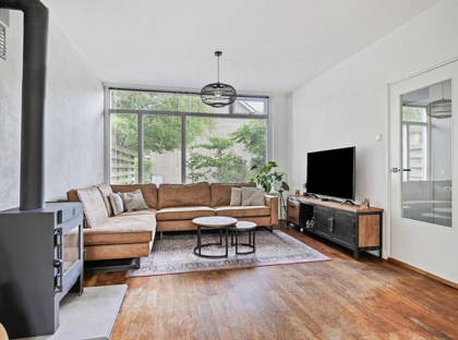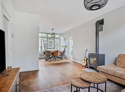 + De doorzonwoonkamer is erg ruim en voorzien van een parketvloer en sfeervolle houtkachel die zorgt voor warmte én karakter. De grote raampartijen zorgen voor een natuurlijke lichtinval en een fijne verbinding met de tuin.