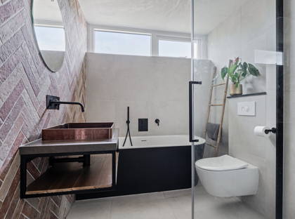 + De badkamer is in 2018 volledig gemoderniseerd en is ingericht met een halfvrijstaand ligbad, ruime inloopdouche, wandtoilet en een stijlvol badkamermeubel met wastafel.