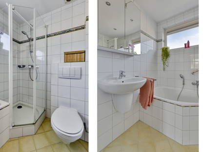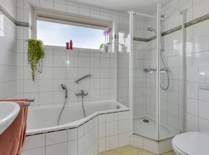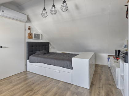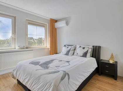 Op de eerste verdieping bevinden zich drie volwaardige slaapkamers, allen netjes afgewerkt met laminaatvloeren en strakke wand- en plafondafwerking. De slaapkamers zijn voorzien van airconditioning die kan verwarmen en koelen en deels uitgerust met elektrische rolluiken. Kunststof kozijnen met HR++ glas en horren zorgen voor extra comfort en isolatie. De badkamer is compleet uitgevoerd met een ligbad, douche, wastafel, toilet en mechanische ventilatie.