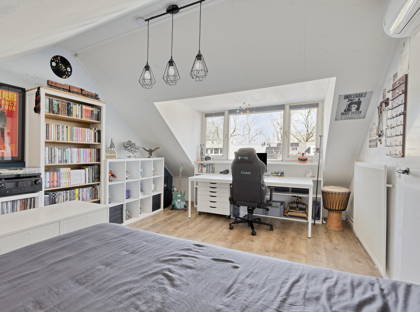 De tweede verdieping biedt een voorzolder met een Velux dakraam (inclusief hor en screen), de opstelling van de Intergas cv-ketel (2021) en een vierde slaapkamer met dakkapel (inclusief screen), geïsoleerd dak en nette afwerking.