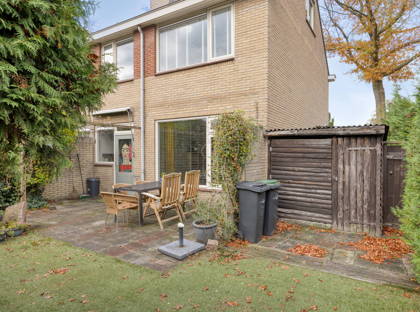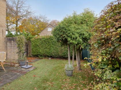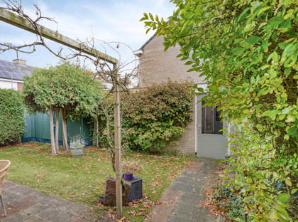 De woning beschikt over een achtertuin met achterom, gelegen achter de garage en voorzien van een aangebouwde houten berging. Aan de voorzijde is er parkeergelegenheid.