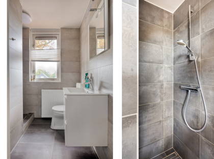 Op de eerste verdieping bevinden zich drie slaapkamers en een badkamer. De hoofdslaapkamer is voorzien van laminaat en dubbel glas, terwijl de andere twee kamers eveneens prettige ruimtes bieden die zich uitstekend lenen als slaap, werk- of hobbykamer. De badkamer is compleet ingericht met een douche, wastafel en toilet, en biedt alles wat je nodig hebt voor dagelijks comfort.