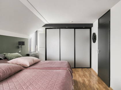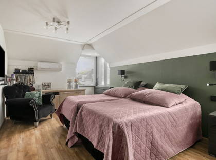+ De royale hoofdslaapkamer waren voorheen 2 slaapkamers en heeft een dakkapel aan weerszijden. In deze kamer ligt een laminaatvloer en is een brede kastenwand gemaakt. Verder is er airco beschikbaar.