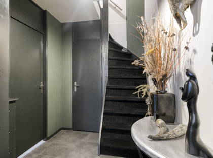 + Vlizotrap naar bergzolder. Hier zijn hier de HR-combiketel en de unit van de centrale afzuiging geïnstalleerd.