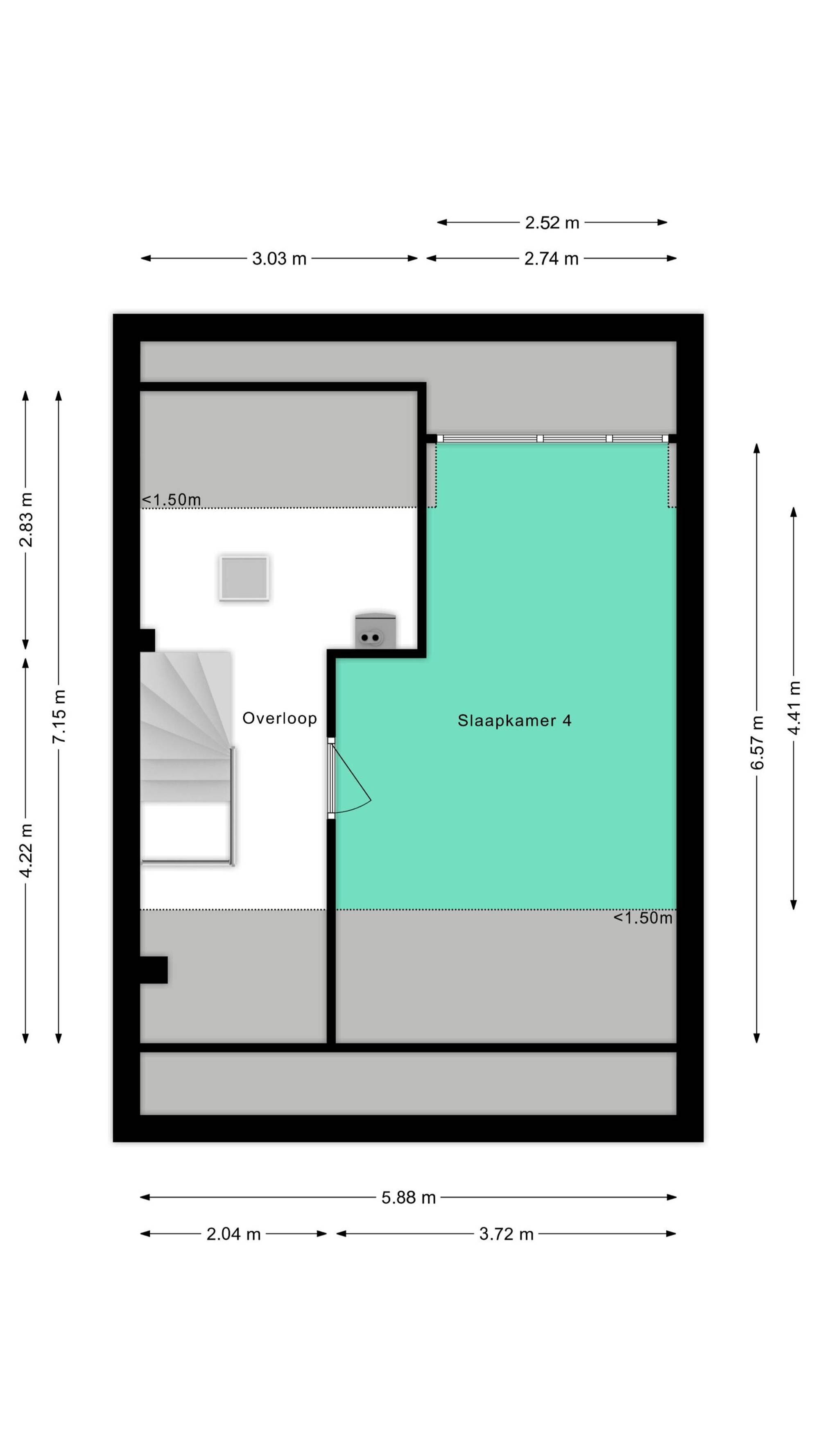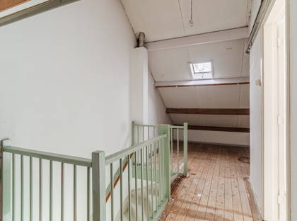 Overloop met toegang tot een vierde, ruime slaapkamer met dakkapel.