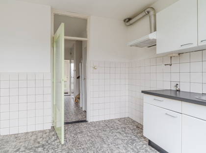 Entree, hal met meterkast en toiletruimte. Vanuit de hal toegang tot de lichte woonkamer en de standaard uitgevoerde keuken. De keuken biedt directe toegang tot de achtertuin.