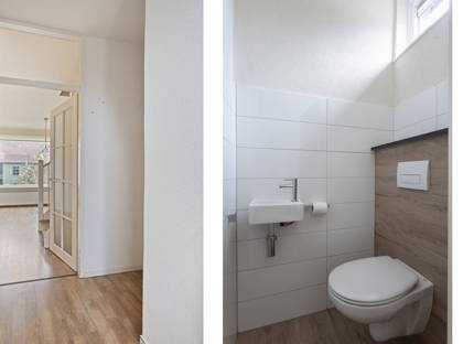 Via de vaste trap bereik je de eerste verdieping, die is uitgevoerd met een solide betonvloer. Op de overloop heb je toegang tot drie comfortabele slaapkamers. De gehele verdieping is afgewerkt met laminaatvloeren en voorzien van duurzame kunststof kozijnen. De moderne badkamer, circa 3 jaar oud, is praktisch ingedeeld en beschikt over een wastafel en toilet.