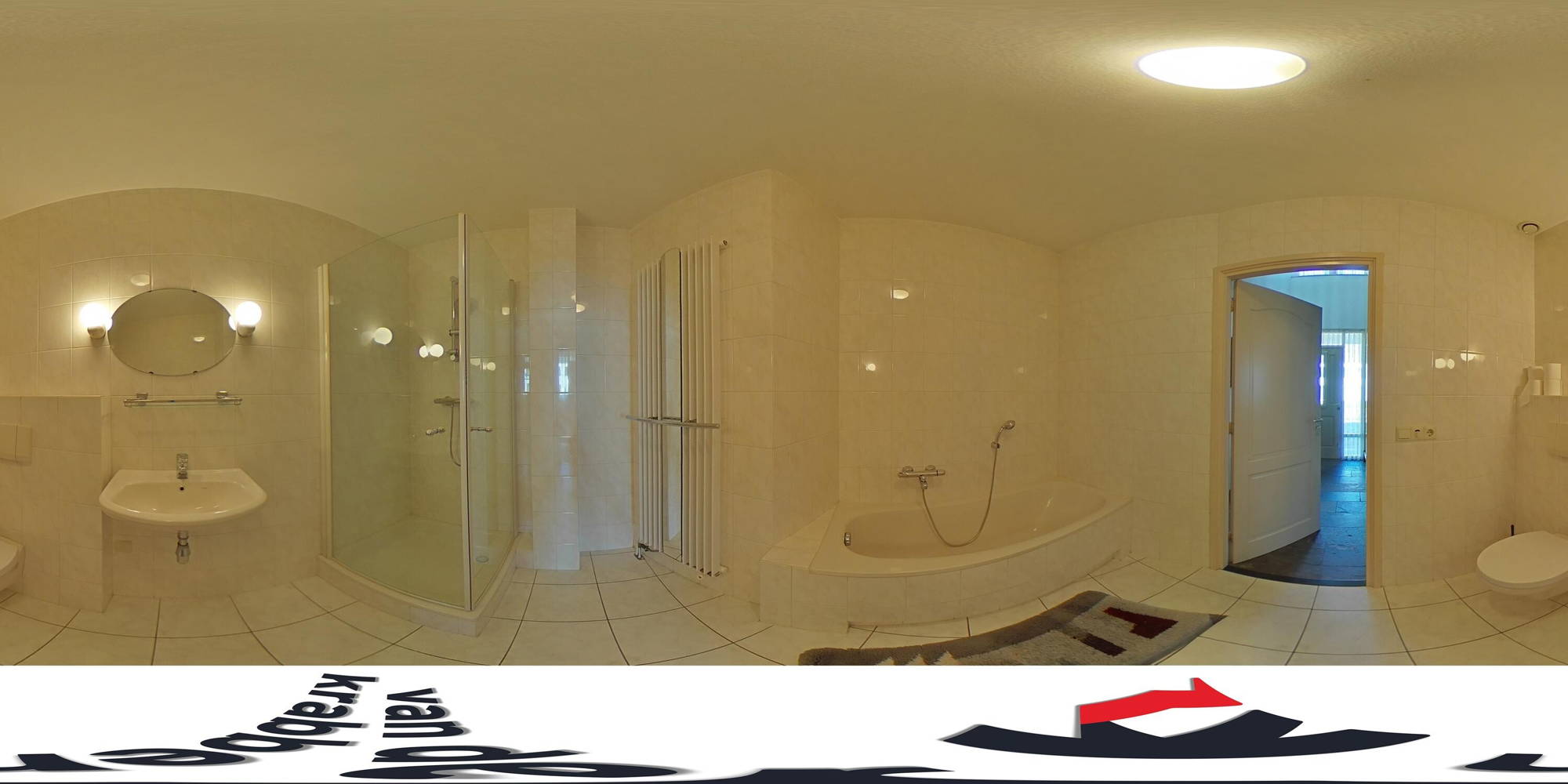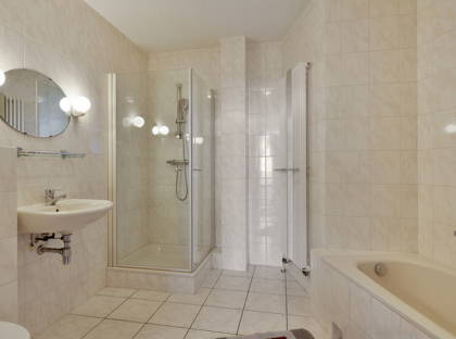 + Badkamer op de begane grond is ruim opgezet en voorzien van bad, douche, toilet en wastafel.