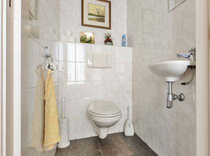 De slaapkamer op de benedenverdieping is voorzien van een inbouwkast. Deze ruimte kan natuurlijk voor meerdere doeleinden worden gebruikt. Het is echt een multifunctionele ruimte, ook ideaal als hobby- of werkruimte of atelier. Door naar de badkamer: deze is ruim opgezet en voorzien van bad, douche, wastafel en toilet.