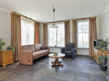 + Woonkamer met openslaande deuren naar de tuin.