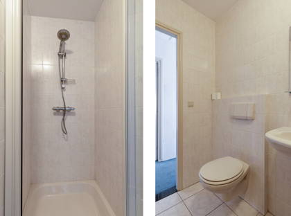 + Badkamer op de 1e verdieping is voorzien van douche, wastafel en toilet.
