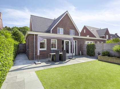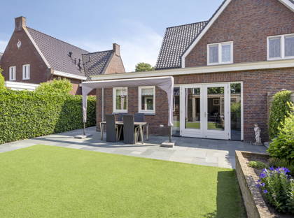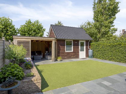 De onderhoudsvriendelijke achtertuin is keurig aangelegd met een royaal terras, kunstgrasveld en een kleurrijke border. Achterin staat een berging met daarnaast een overkapping – welke ideaal is voor de loungehoek. Ook voor het opbergen van je fietsen en tuinspullen is er ruimte genoeg. Dankzij de ligging geniet je hier volop van privacy en rust.