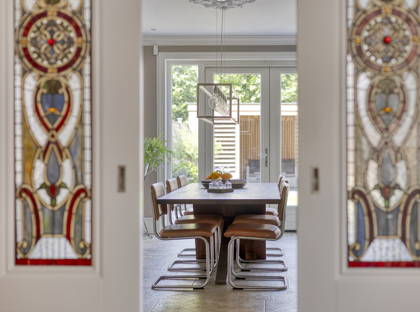 + Glas-in-lood schuifdeuren naar leefkeuken