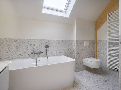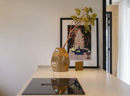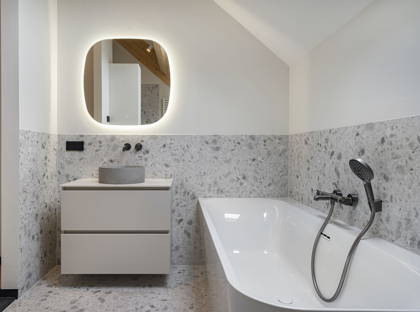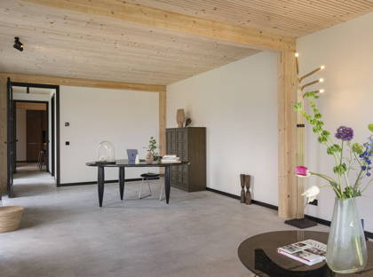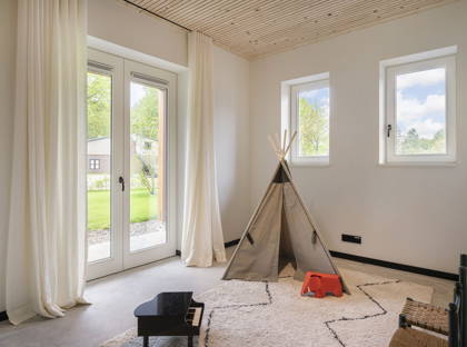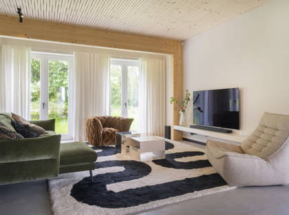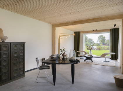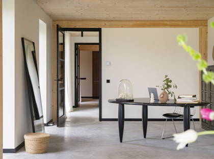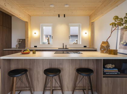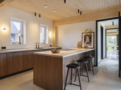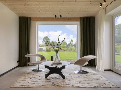 Het ruime achterhuis biedt veelzijdige mogelijkheden: denk aan een atelier, werkruimte of zelfs een tuinkamer. Dankzij de grote raampartijen en openslaande deuren is elke ruimte voorzien van een overvloed aan natuurlijk licht. In de royale garage parkeer je veilig je auto, stal je fietsen en berg je tuingereedschap op. Hier bevinden zich tevens de technische installaties die jouw ecovilla van duurzame energie voorzien.