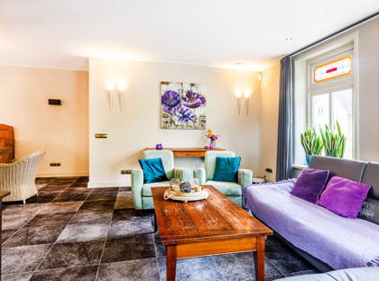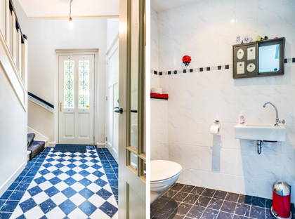 Deze bedrijfswoning biedt niet alleen uitstekende bedrijfsvoorzieningen, maar ook een comfortabele en ruime woonsfeer. Bij binnenkomst word je verwelkomd in een ruime hal met een fraaie tegelvloer. In de hal bevindt zich tevens een apart toilet.