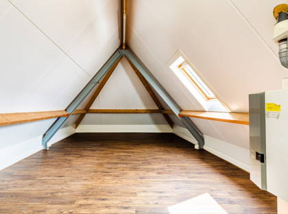+ Zolderruimte op de verdieping met dakraam, eventueel te gebruiken als 3e slaapkamer.