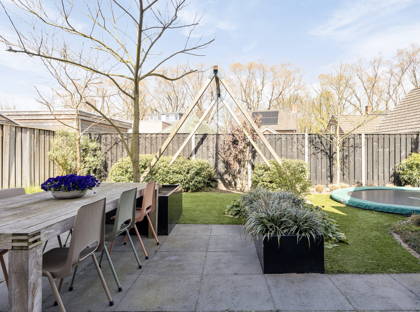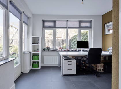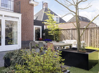 De zeer stijlvol aangelegde tuin is onderhoudsvriendelijk en toch heerlijk groen. Eten, loungen, spelen en genieten: in deze tuin kan het allemaal! Vanuit de tuin heb je toegang tot de aangebouwde multifunctionele ruimte aan de zijkant van het huis. Deze is zeer netjes afgewerkt en biedt veel mogelijkheden. Dankzij de eigen toegang aan de voorzijde is deze ruimte ook bijzonder geschikt om een salon of praktijk aan huis te creëren.