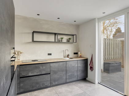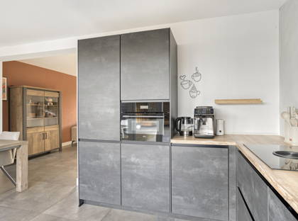 De keuken is in 2023 vernieuwd en van alle gemakken voorzien. Je vindt hier een inductiekookplaat met geïntegreerde afzuiging, combimagnetron, koelkast, vriezer en vaatwasser.
