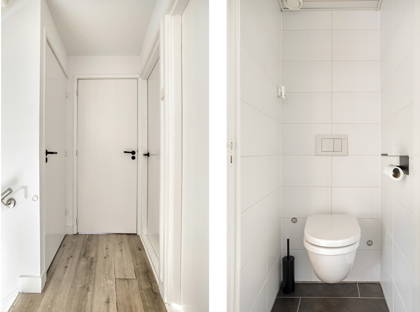 Het toilet bevindt zich op deze verdieping in een aparte ruimte, wat altijd fijn is. Ook is er een separate was-/bergruimte aanwezig: ideaal om je wasmachine en droger uit het zicht te houden.