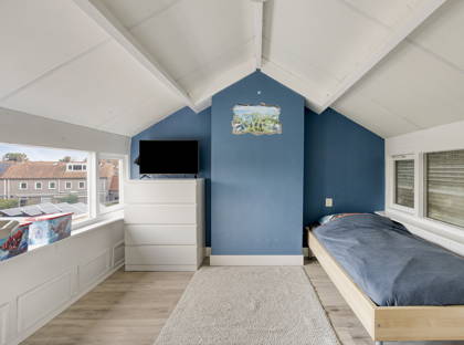 Via een vaste trap bereik je de zolderverdieping. Door de grote dakkapellen is dit een volwaardige extra ruimte geworden: perfect als extra slaapkamer, thuiswerkplek of hobbyruimte.
