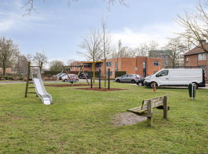 En privacy? Die is hier zeker aanwezig, omdat je geen directe achterburen hebt. Achterin vind je een poort met toegang tot een plein met sportvoorzieningen.