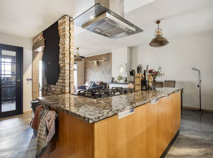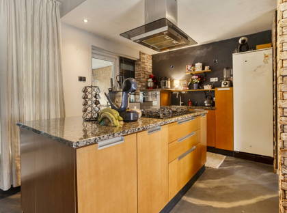 De open keuken is voorzien van een groot kookeiland met granieten blad, gaskookplaat, afzuigkap, combi-oven, vaatwasser en voldoende bergruimte. Aansluitend bevindt zich de tuinkamer, een praktische aanbouw met openslaande deuren naar de achtertuin. Deze ruimte is multifunctioneel te gebruiken, bijvoorbeeld als eetkamer, speelkamer of hobbyruimte.