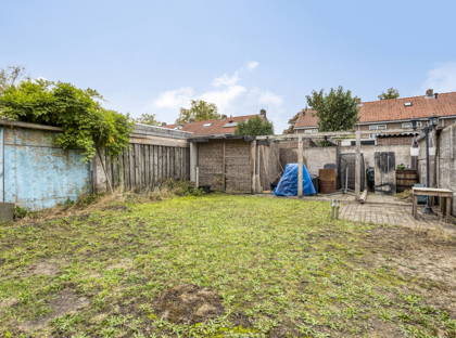 De achtertuin is diep en zonnig, met volop ruimte voor een terras, speelplek of moestuin. Achter in de tuin bevindt zich een berging, en aan de zijkant is een eigen achterom aanwezig.