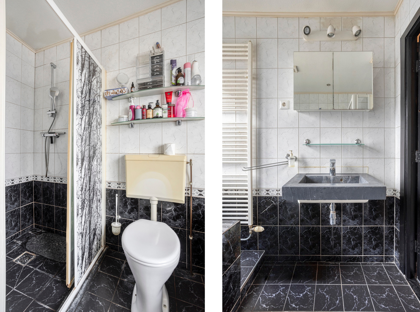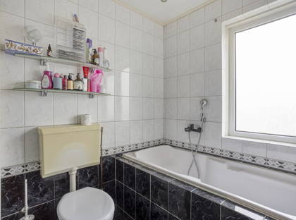 Op de eerste verdieping bevinden zich drie goed formaat slaapkamers, elk met een prettige lichtinval. Een van de kamers beschikt over een inbouwkast. De badkamer is uitgevoerd met ligbad, toilet, wastafelmeubel en raam voor natuurlijke ventilatie.