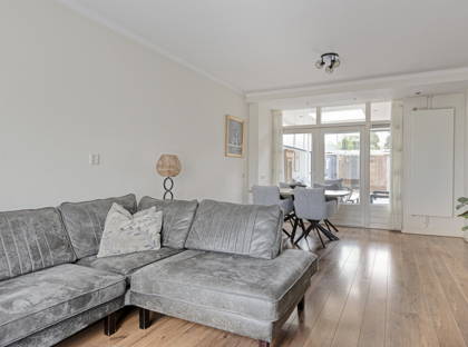 Via de goed verzorgde voortuin kom je binnen in de woning. In de hal is en toilet en de trap naar de eerste verdieping. Vervolgens loop je door naar de woonkamer, waar je een gezellige zithoek en een eethoek kunt creëren. De woonkamer is bovendien voorzien van HR++ glas, wat zorgt voor extra comfort en een betere isolatie.