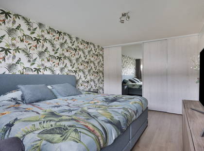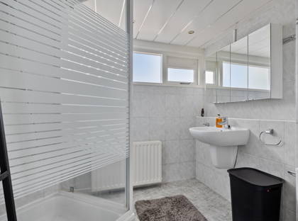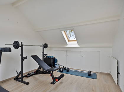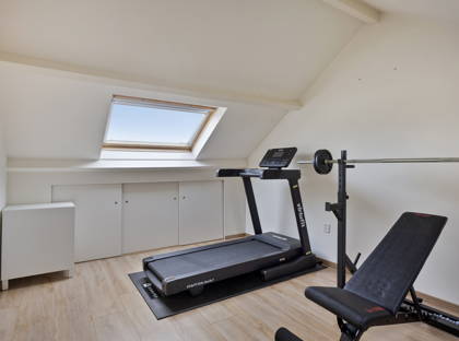 Op de eerste verdieping van dit huis zijn drie slaapkamers en een fijne badkamer. Deze laatste is voorzien van een toilet, wastafel en douche. Op de zolderverdieping is nog een ruime vierde slaapkamer. Deze is nu ingericht als sportkamer en is ook ideaal als werkkamer of hobbyruimte.