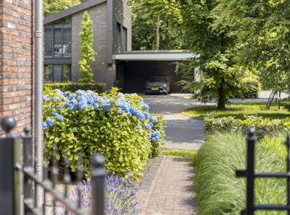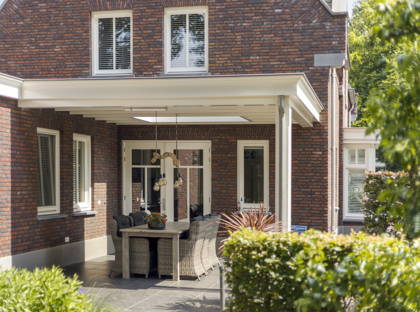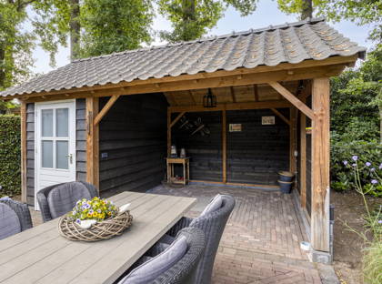 - Mooi aangelegde groene tuin met fraaie overkapping aan huis