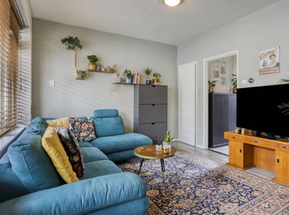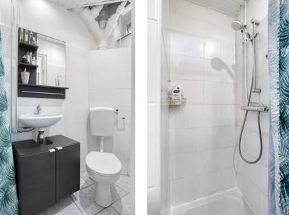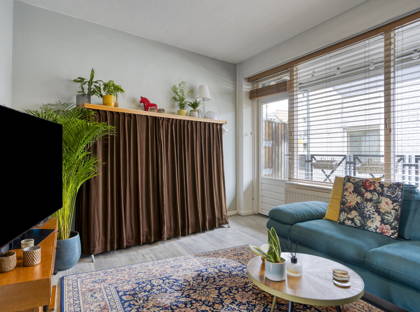 De studio is slim ingedeeld en maakt optimaal gebruik van de beschikbare ruimte. De woonkamer is sfeervol en licht dankzij de brede raampartij over de volledige voorzijde. Hier heb je voldoende plek voor een comfortabele zithoek en slaapgedeelte in één. De laminaatvloer en nette afwerking maken het geheel instapklaar.
