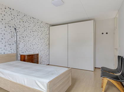 Loop je nog verder naar achteren, dan kom je in het slaapgedeelte van het huis. Omdat alles gelijkvloers is, is dit een levensloopbestendige woning. Hier hoef je nooit meer weg! De twee kleinere slaapkamers zijn ideaal als logeerkamer, werkkamer of hobbyruimte. Helemaal achter in de woning is de master bedroom, met ruimte voor een groot bed en een grote kast. Vanuit hier heb je ook toegang tot de tuin. De fraaie en moderne badkamer is compleet uitgerust met een dubbele wastafel, een ruime inloopdouche en een toilet.