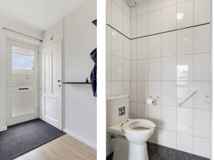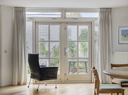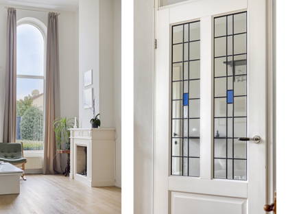Deze bungalow is heerlijk rustig gelegen op de hoek van de straat, met slechts aan één zijde buren. Parkeren is hier nooit een probleem; dat doe je lekker op je eigen inrit of op het aangrenzende parkeerterrein. De ruime entree, waar ook het toilet is, leidt je naar de woonkamer. Let vooral ook op de prachtige glas-in-looddetails in de deur waar je doorheen loopt! Eenmaal in de woonkamer word je verwelkomd door heel veel licht, dat dankzij de enorme ramen aan de voorzijde binnenstroomt. Andere details, zoals de mooie authentieke schouw, geven deze ruimte veel sfeer.