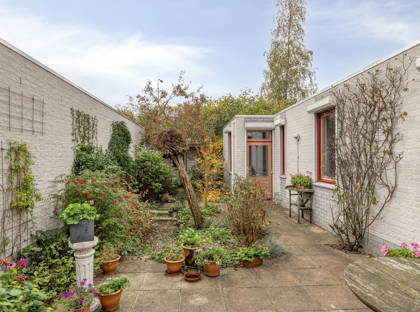 Vanuit de eethoek, de bijkeuken en de grote slaapkamer heb je toegang tot de tuin. Deze is gezellig aangelegd met veel groen en een terras waar je een grote eettafel of zithoek kwijt kunt. Hier kun je gegarandeerd genieten van een kopje koffie in de zon! Achter in de tuin staat nog een berging, ideaal voor het opbergen van tuinspullen en gereedschap. En dan is er natuurlijk nog de ruime garage, die ook veel opbergmogelijkheden biedt. Van fietsen tot vakantiespullen en kerstversiering: hier vind je overal een plekje voor!