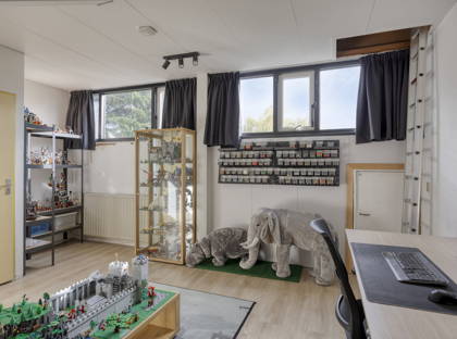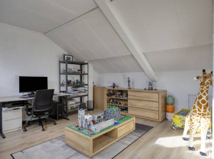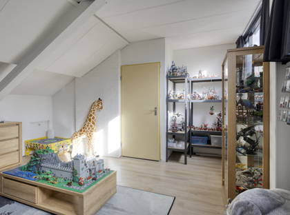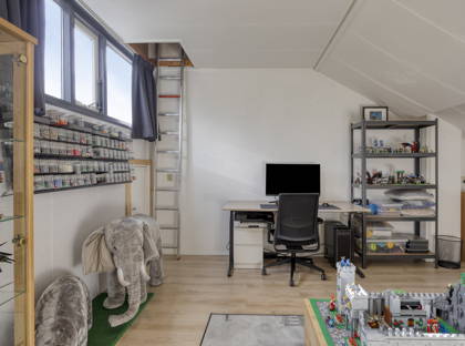 De tweede verdieping biedt een volwaardige vierde slaapkamer. Deze verdieping is multifunctioneel in te delen: werkruimte, hobbykamer of sportkamer? Het kan hier allemaal. Extra bergruimte is aanwezig op de bergzolder, bereikbaar vanaf deze verdieping.